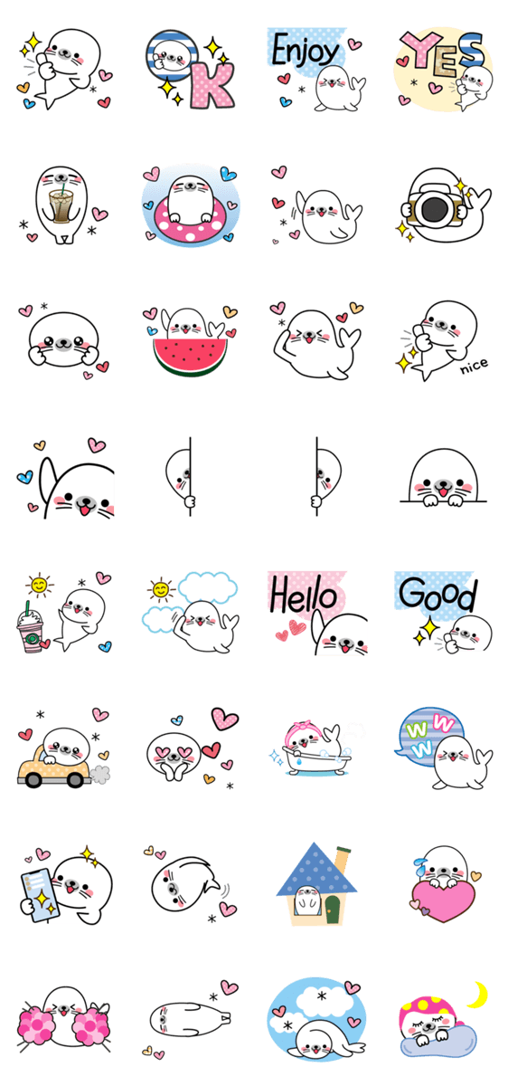| スタンプ説明 | 写真にスタンプを貼って送れるようになったので、専用のスタンプをつくりました。写真にアザラシを貼っていろんな写真を作ってみてください。KEN graphic |