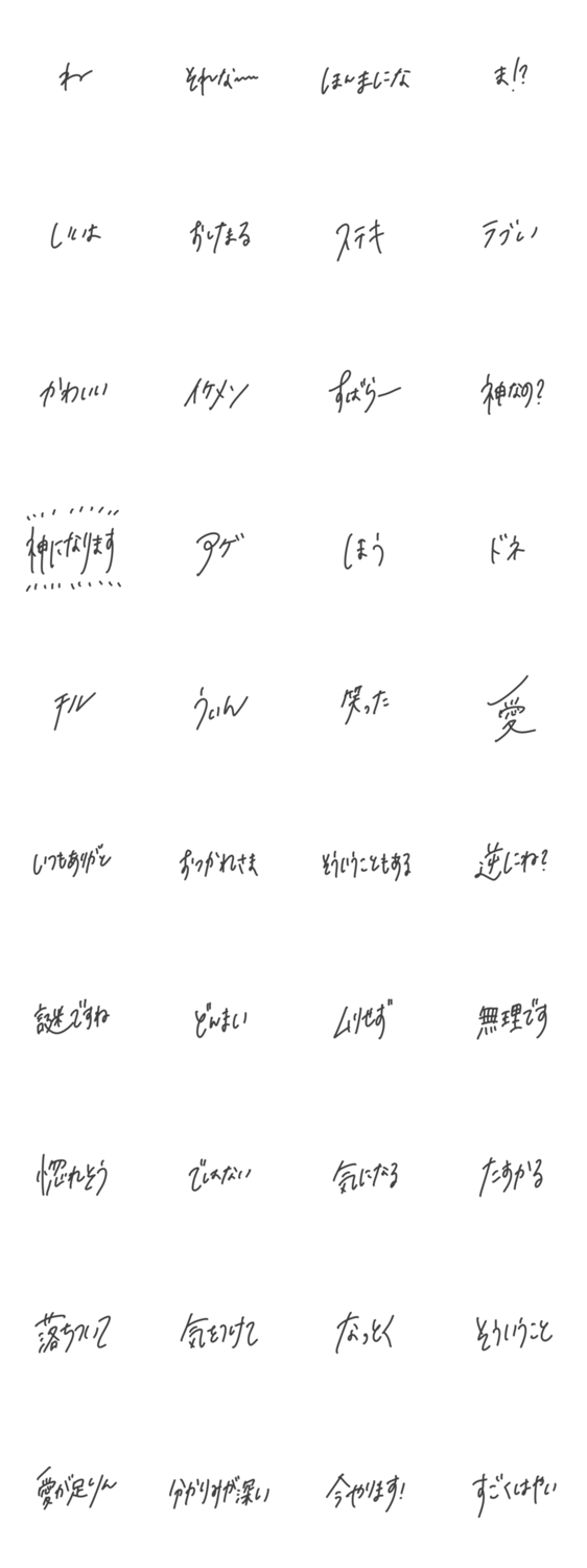 | スタンプ説明 | 会社のチャットツールでよく使われる絶妙な一言をピックアップして、手書きスタンプにしました。 |