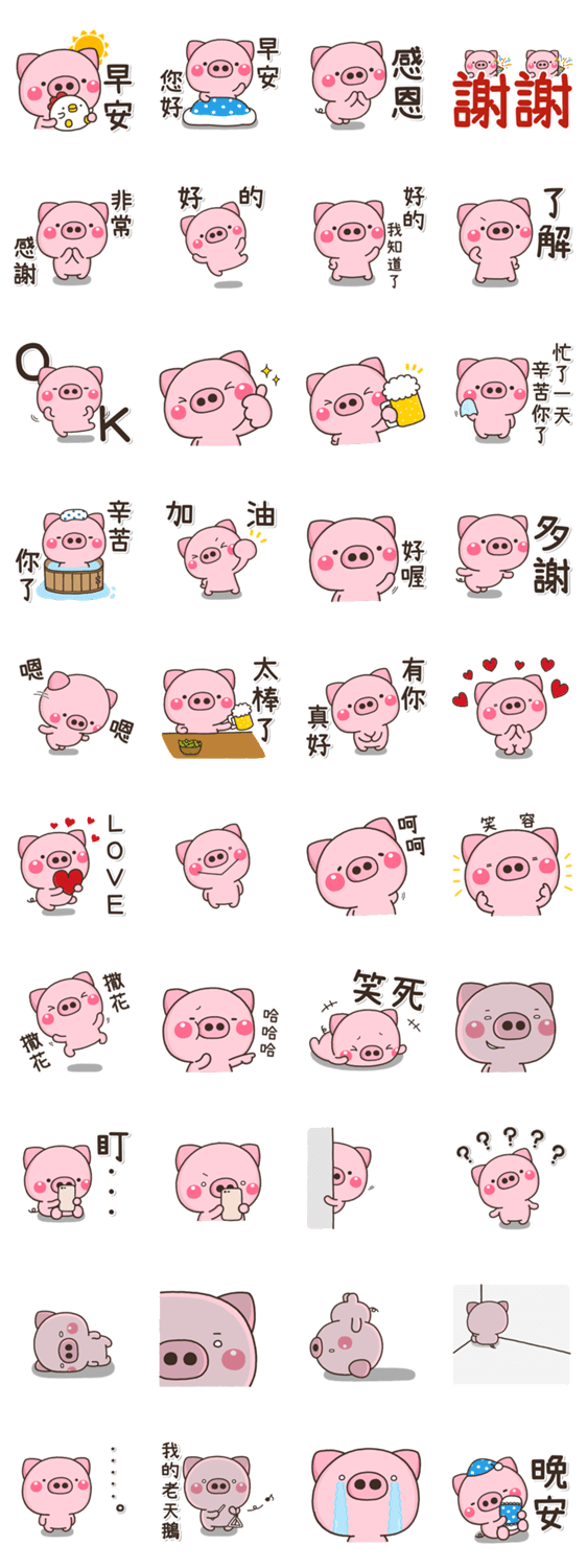 | スタンプ説明 | 可愛的小豬豬,適合每天使用的便利貼圖。【tomoko製作】 |