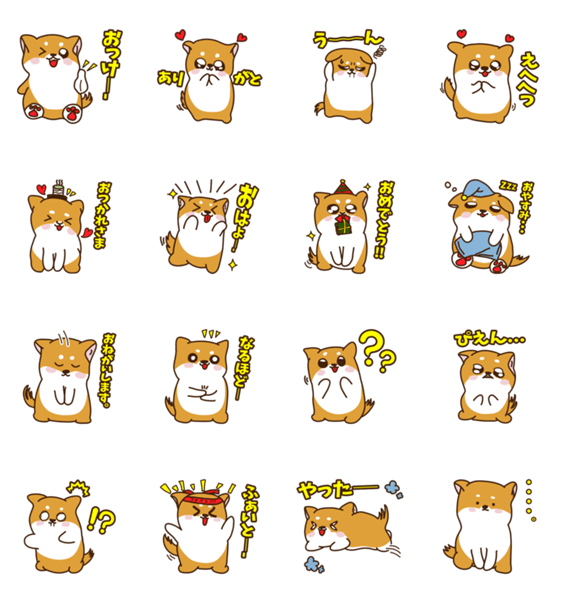 ゆる~くかわいい柴犬のスタンプで癒し度アップ!とっさに使えるあいさつスタンプです。お友達や家族、同僚と一緒に癒されよう♪