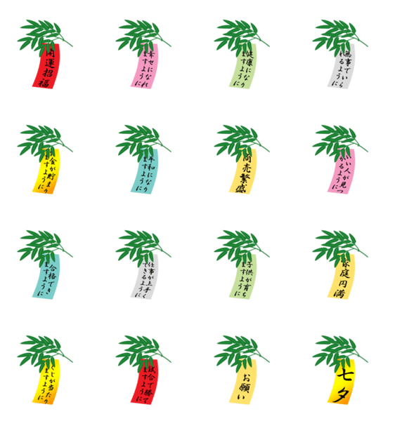 七夕祭りで使われる笹を描きました。短冊に書いたお願いが叶いますように。