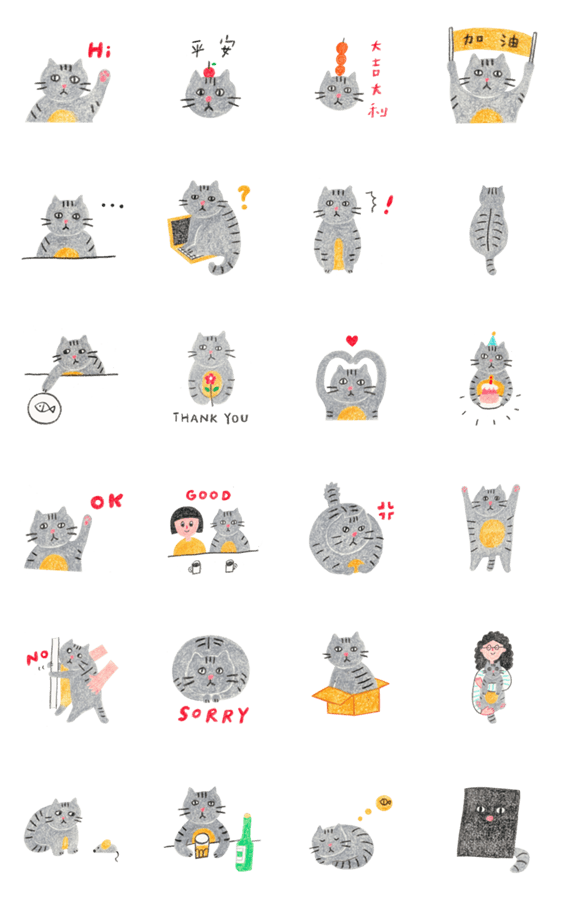 白ネコのあいうえお・・・ってるスタンプ