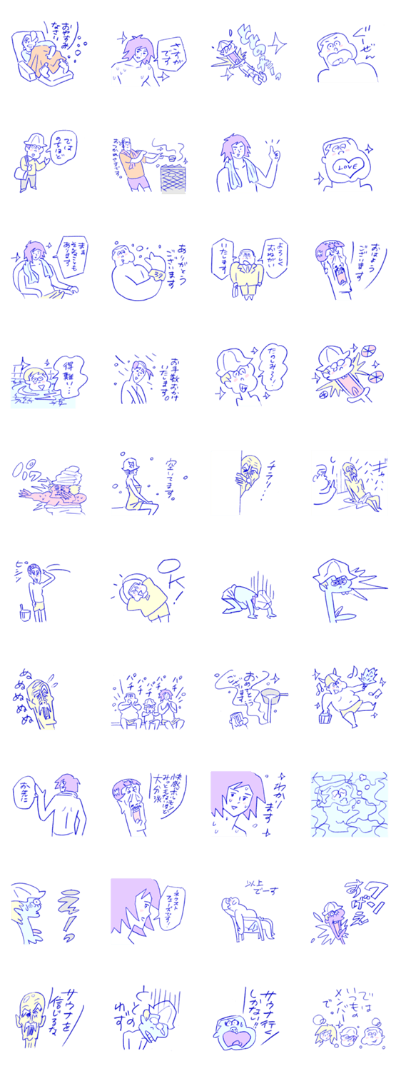 大人気サウナマンガ 『マンガ サ道』のスタンプがついに登場。 これを使えば、サウナ仲間とのやりとりがもっと楽しくなること 間違いなし! ととのったー!!
