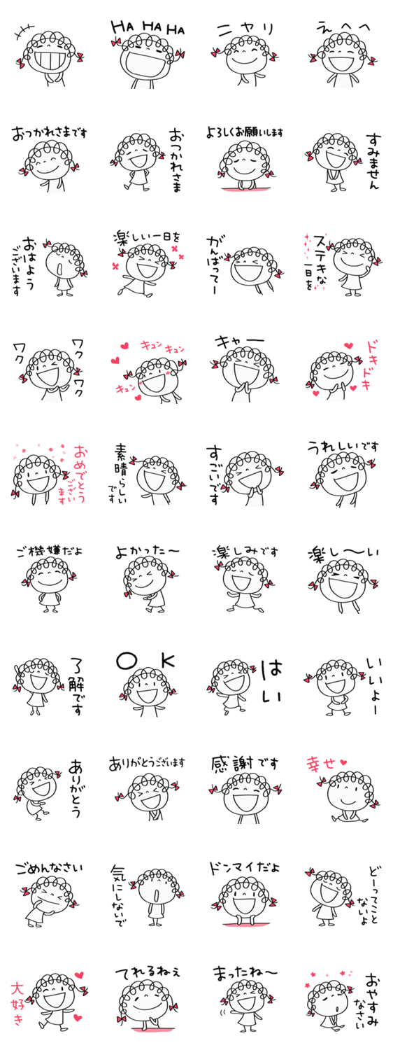 | スタンプ説明 | くるリボン。笑顔いっぱい編。「えへへ」「ワクワクワク」から「楽しみです」まで。笑顔のくるリボンで日常をご機嫌に過ごそう。家族、学校、お仕事でも。 |