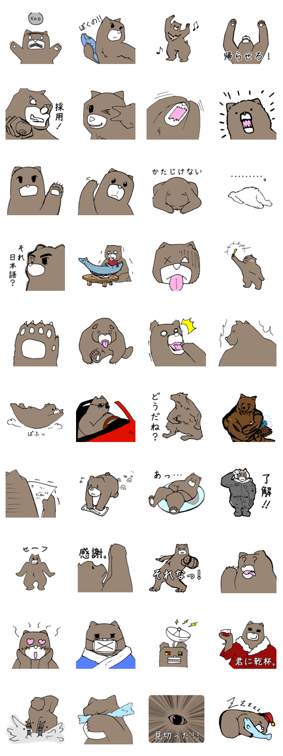 | スタンプ説明 | とにかくクマでござる。おぬしのお気に入りはどれですかな? |