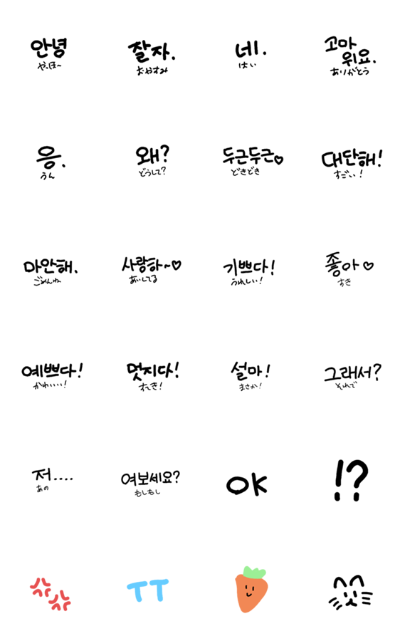 LINEスタンプメーカーでつくったスタンプです。韓国語と日本語なので韓国語学びたい方ぜひどうぞ!!!