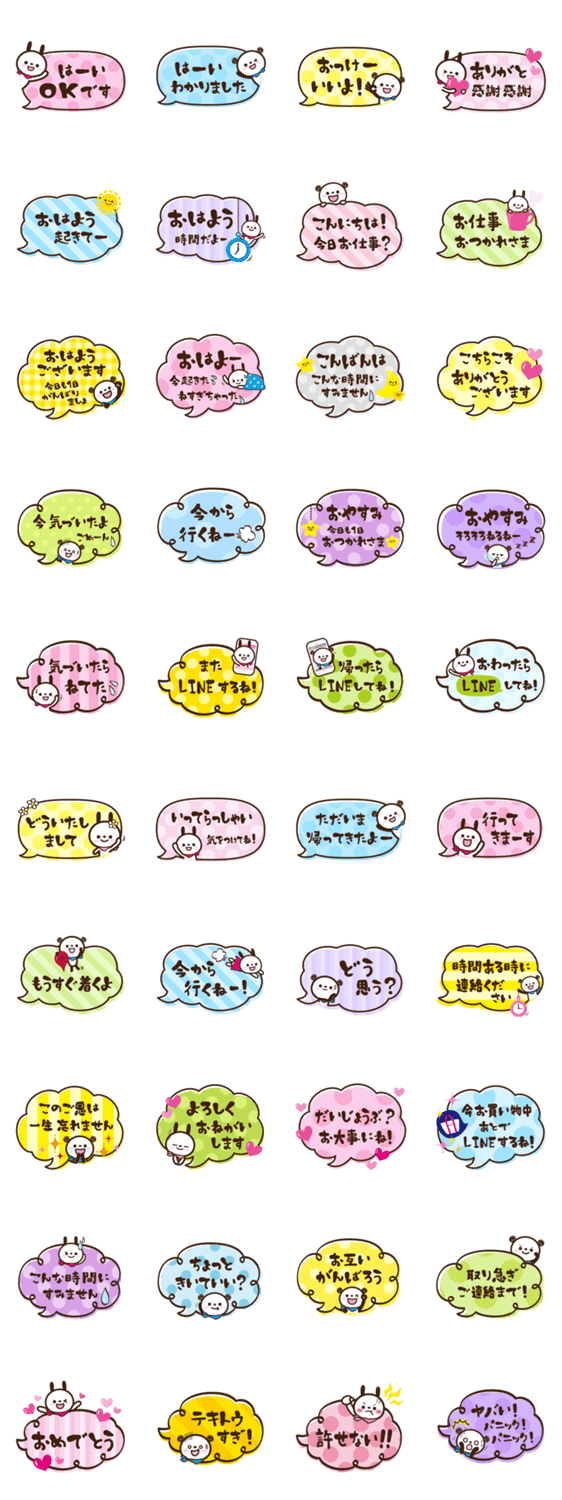 毎日使える吹き出しスタンプ第2弾★どなたでも気軽に毎日使える、よく使う挨拶&返事&敬語のセットです♪毎日使える/見やすい/かわいい/うさぎ/パンダ/ふきだし