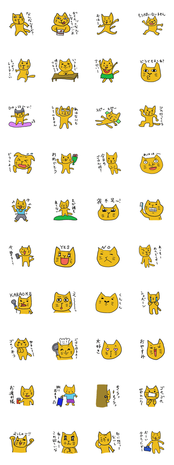 | スタンプ説明 | これはねこのスタンプです。おもしろい表情で人々を和ませます。いろいろなシーンでこのスタンプを使うことができます。 |