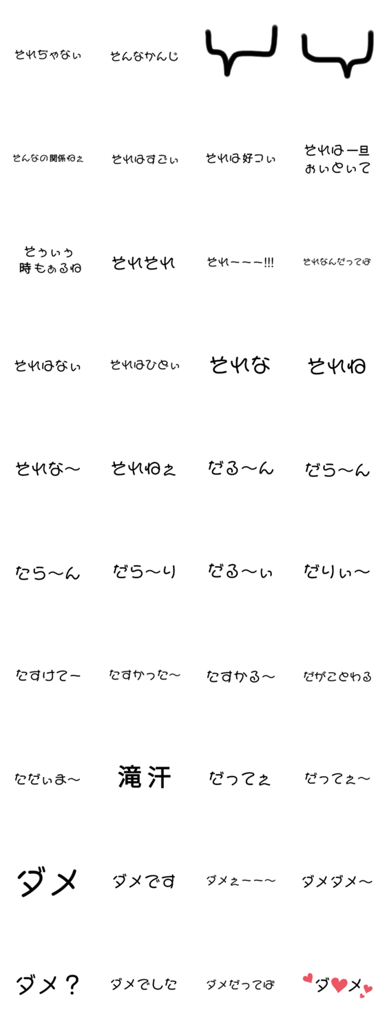 吹き出しと組み合わせたり等して好きなキャラ等に好きな言葉を言わせられるスタンプです。吹き出しだけでもセリフだけでも充分使えます。色んなセリフを添えてみました。