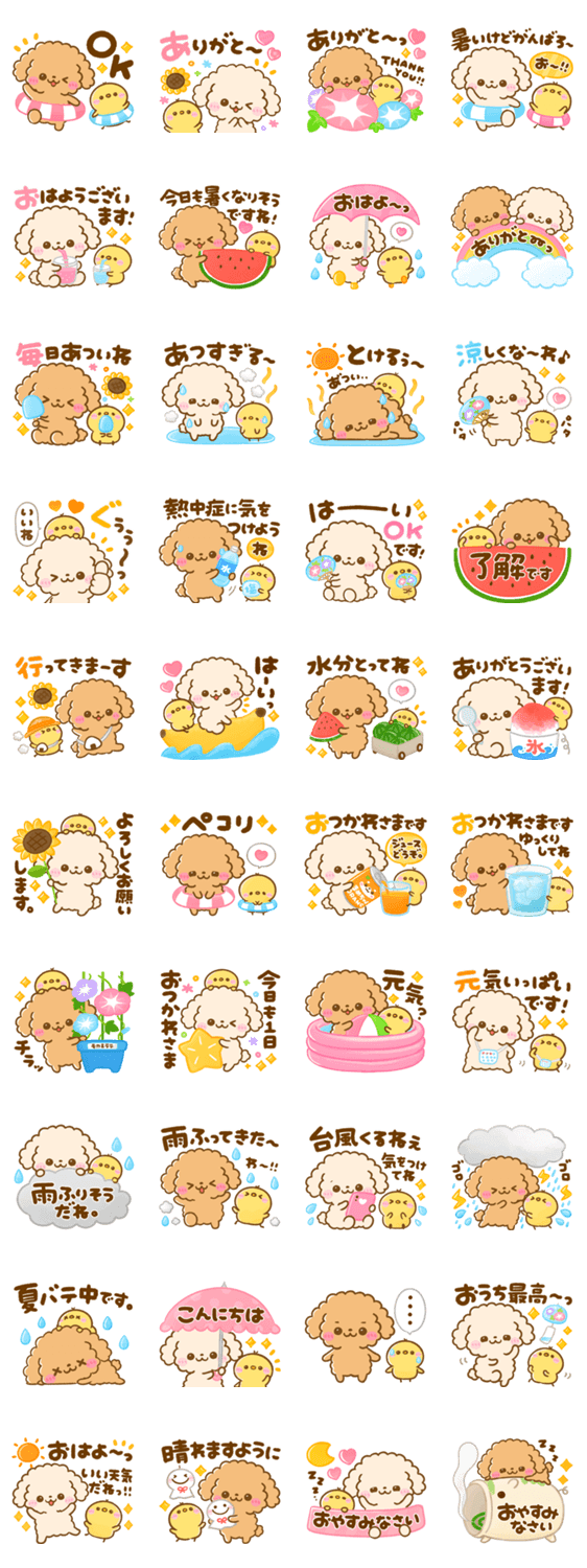 ふわもこといぷー♡トイプードルのモカちゃんとラテくんのとってもカラフルな夏毎日に役立つスタンプです♡敬語も♪犬♡