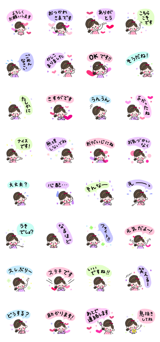 スタンプ説明 友達や家族によく使う言葉を集めてみました。