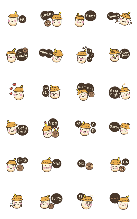 | スタンプ説明 | Funny time with cute pearl milk tea & tiny bubbles |