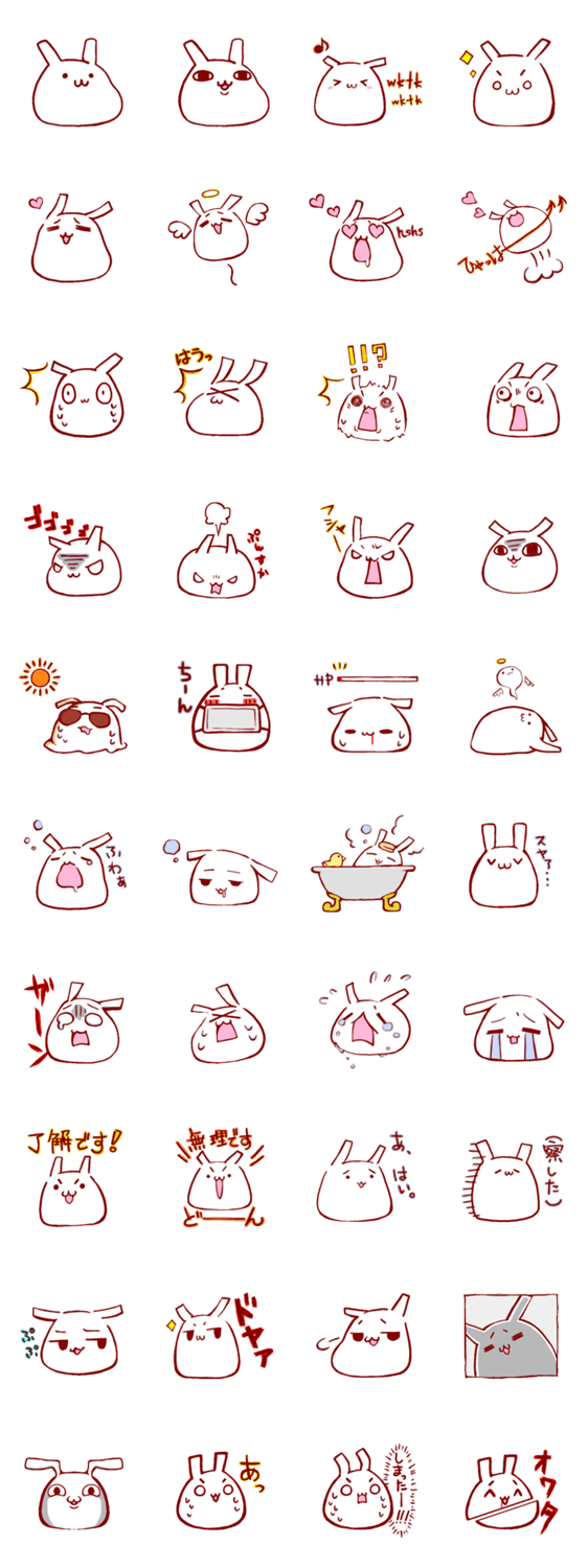 うさぎ的な生物のゆるいスタンプ第二弾です。今回は使いやすさを高めてみました。第一弾と組み合わせると汎用性アップ?