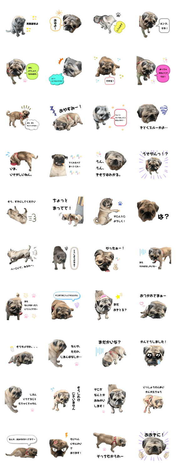 初老のパグがスタンプになりたがっていたのでスタンプにしました。
