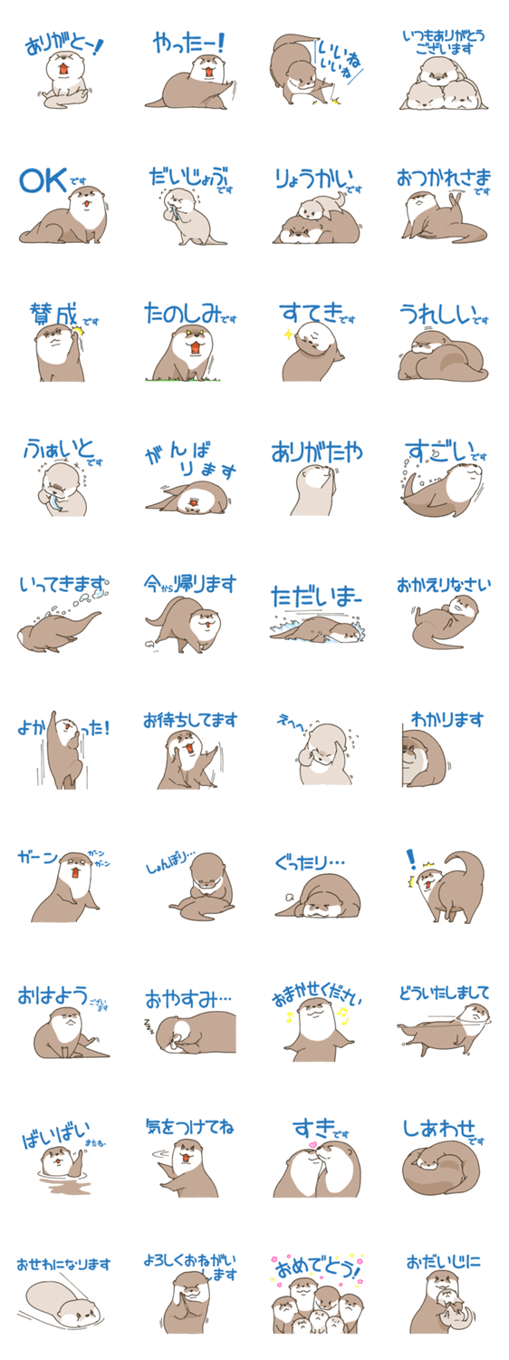 | スタンプ説明 | 当協会はカワウソ保全を目的とし研究普及啓発を行っています。 大人気こつめってぃの作者鍵条様が当協会のために書き下ろしてくださったオリジナルスタンプです! |