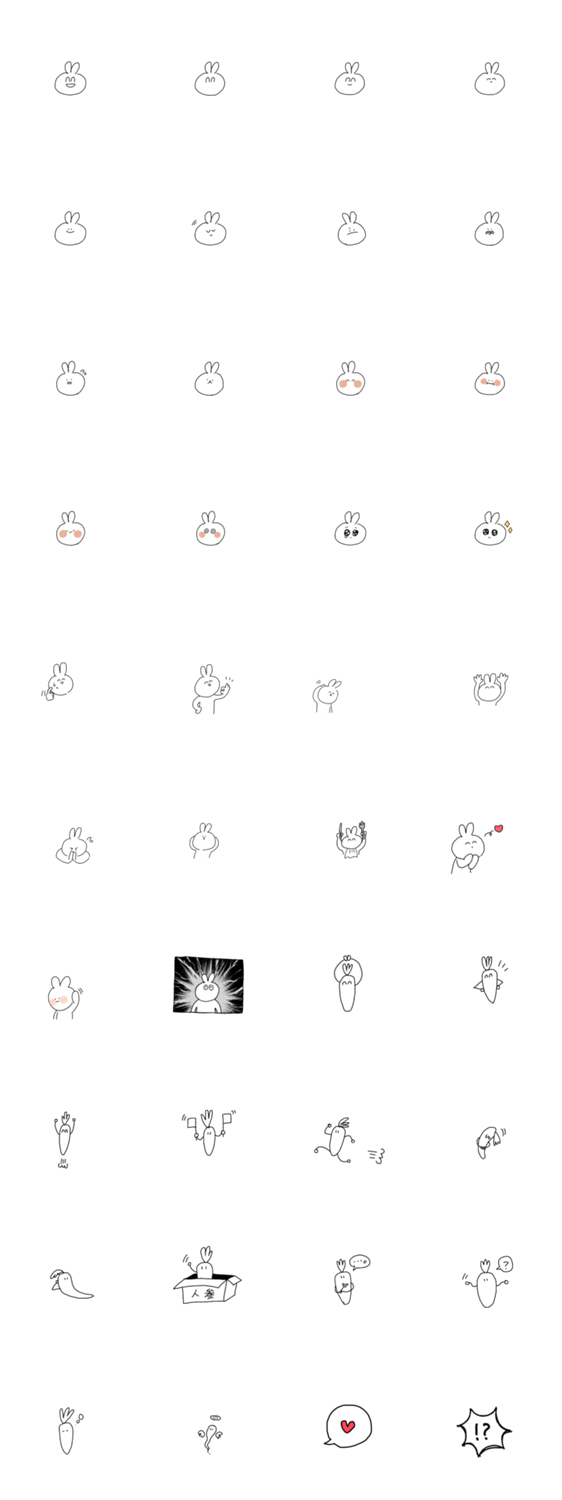 うさぎと人参のスタンプです。可愛く癒されるスタンプで会話を盛り上げてください。