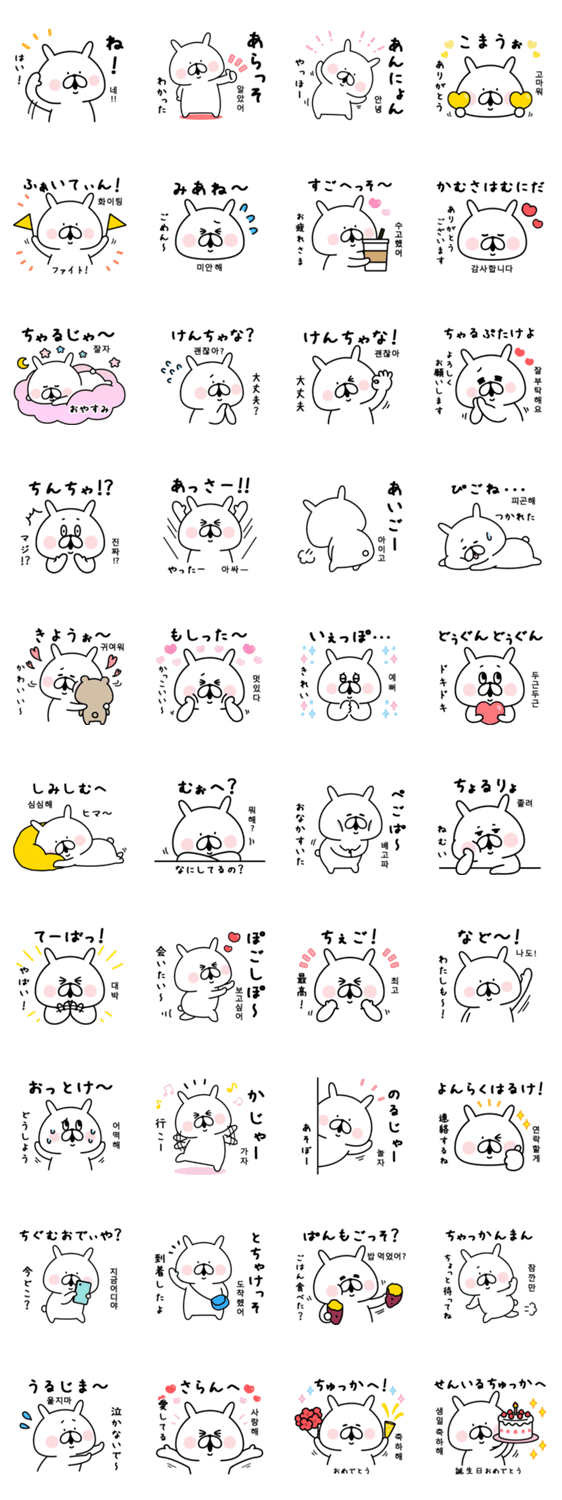 ゆるうさぎのひらがな韓国語。 -LINEスタンプマニア