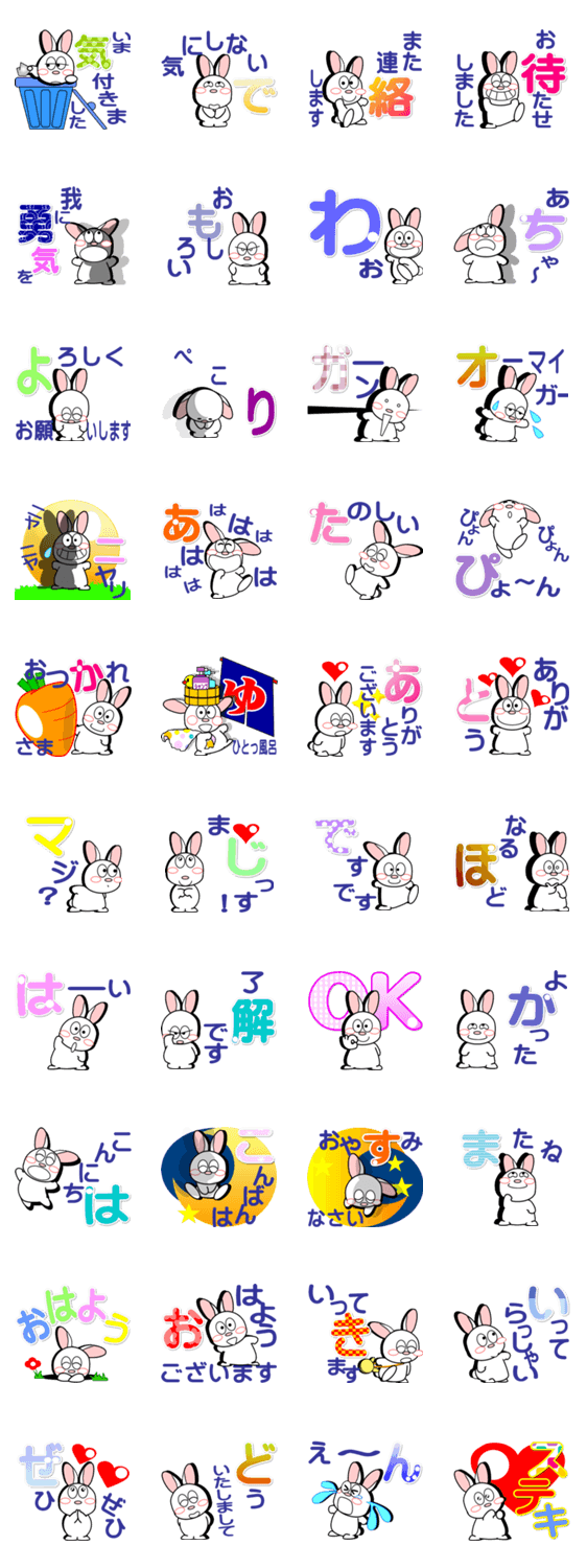 毎日使っても楽しくて面白い白ウサギのうささーんスタンプです、はい!
