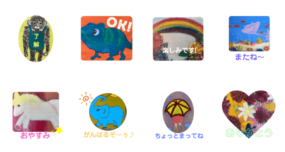 LINEスタンプメーカーでつくったスタンプです。口に筆をくわえて描いています。