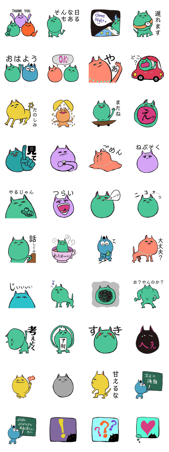 カラフルで可愛いネコのスタンプです/シュール/煽り/版画/猫/イヤミ/使いやすい/ネタ