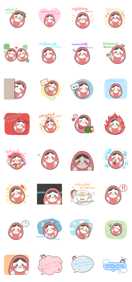 ミャンマーのかわいいだるまちゃんスタンプです!使いやすい言葉をあつめてみました!
