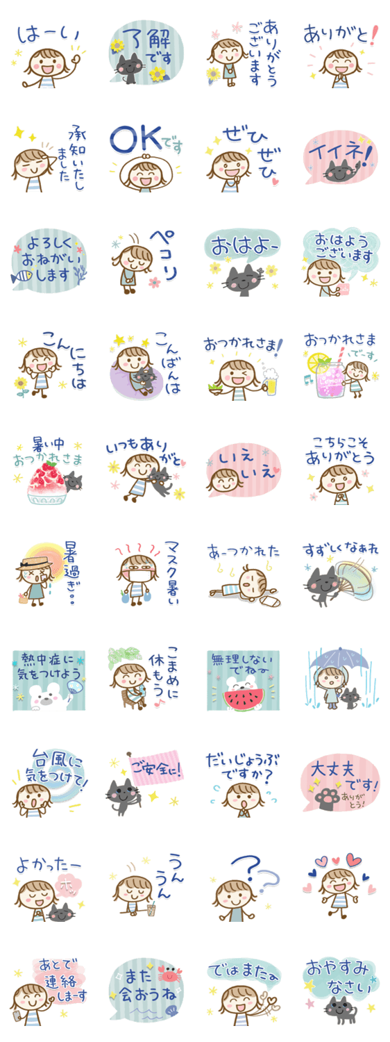 やさしい色合いとシンプルな言葉で毎日使えるスタンプです。 大人のあなたに。敬語/毎日/シンプル/黒猫/白熊/外ハネボブ