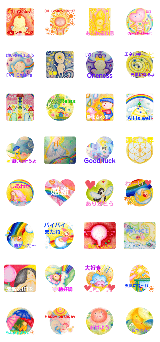 | スタンプ説明 | 見る度に 私もアナタもhappyな気分に♡ 会話の中でチャクラ調整&エネルギーチャージ☆を |
