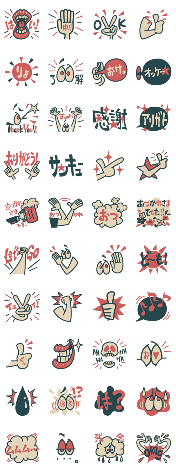 絵文字『シンプル・レトロ・絵文字』シリーズも展開中。毎日使えるシンプルでレトロポップなスタンプ