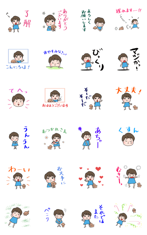 トイプードルとショートヘア女子の日常使えるスタンプです。