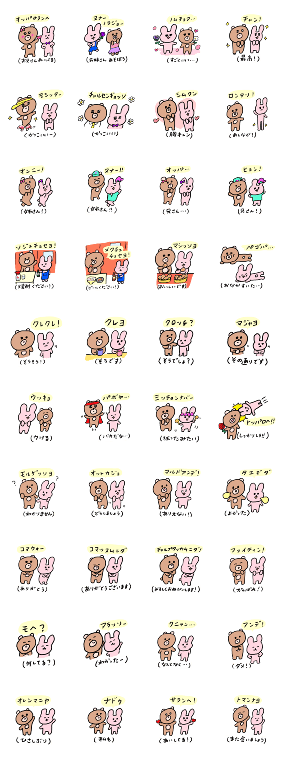 カタカナ韓国語 くまちゃんとうさぎちゃん2 -LINEスタンプマニア