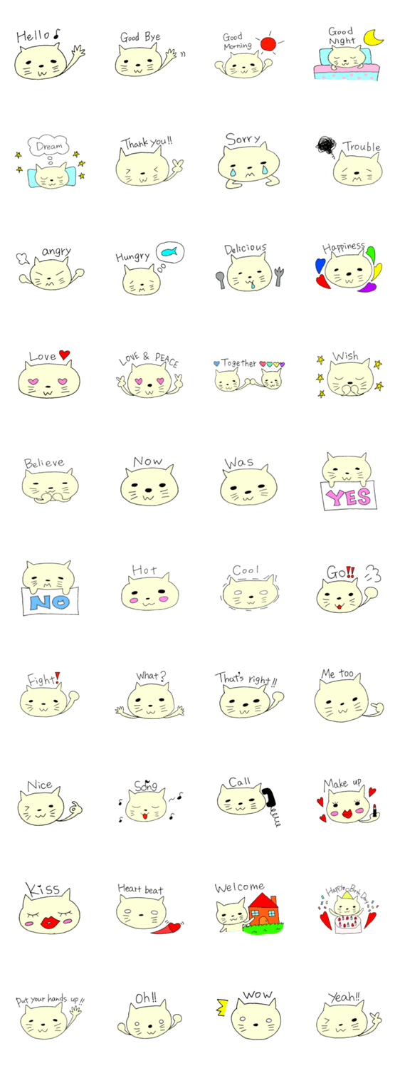英語で表現した猫のスタンプです。