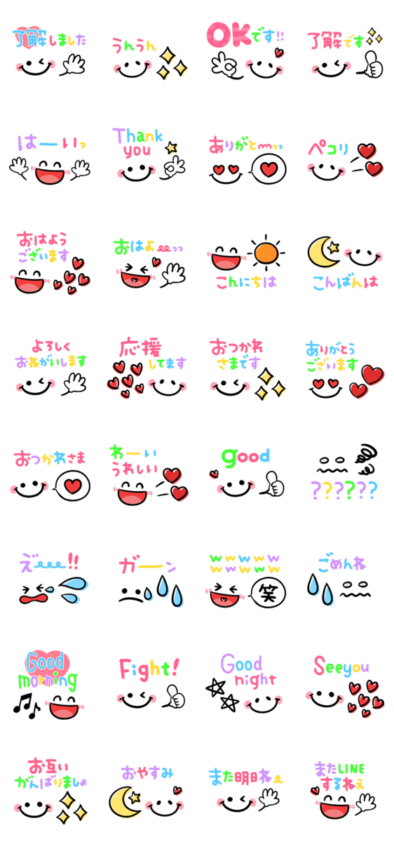 使いやすい言葉や敬語を集めました! みんな使える無難な日常会話セットです。 みやすく大人可愛いデカ文字スタンプ♪ かわいい/ハート多め/家族/連絡用