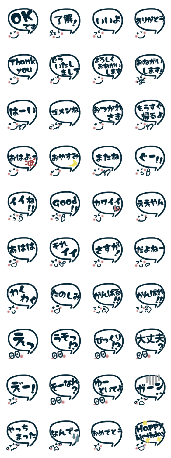 日常よく使うやりとりを 吹き出しのスタンプにしました。