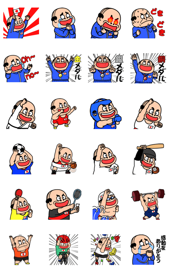 昭和のおじさんがスポーツを応援するよ!画面いっぱいに飛び出すポップアップスタンプVer.です!