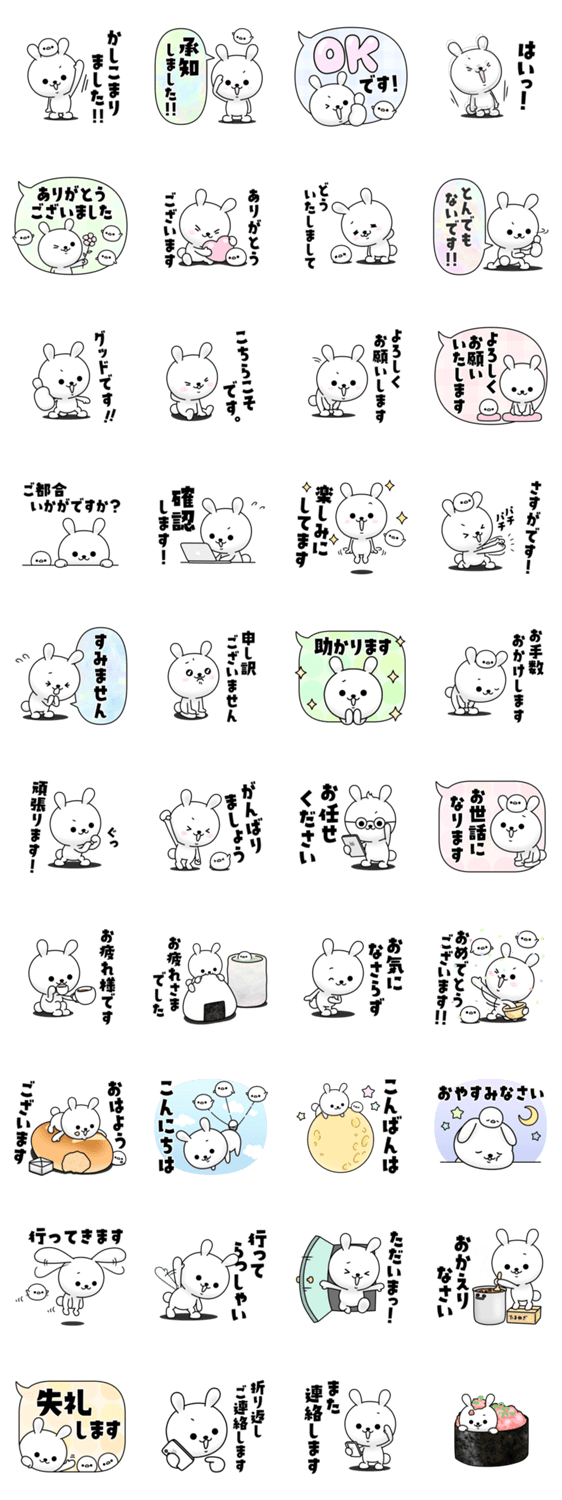 ひねくれうさぎシリーズ第21弾!お仕事の相手や目上の方にも使える敬語verです。毎日使える日常会話中心のセリフを集めました。なんかまるいのもいる…【ひねくれ度0%】