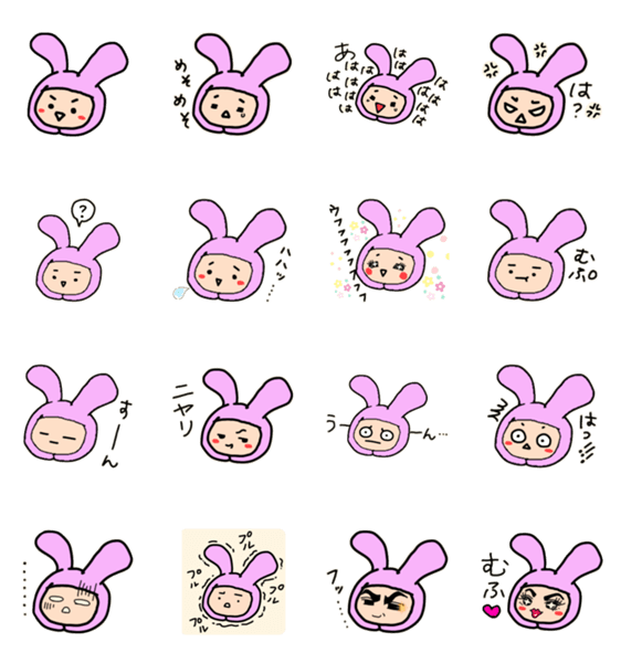 着ぐるみうさぎさん 顔だけ文字付き -LINEスタンプマニア