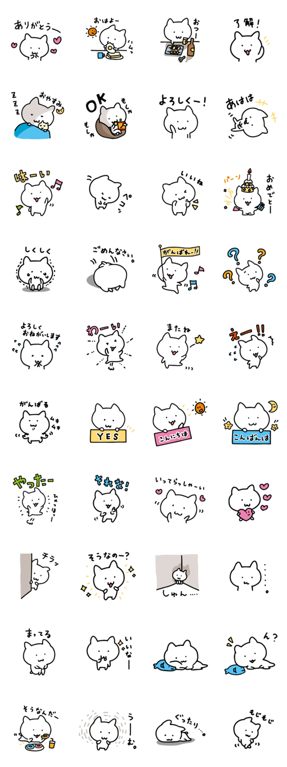 白ネコのあいうえお・・・ってるスタンプ