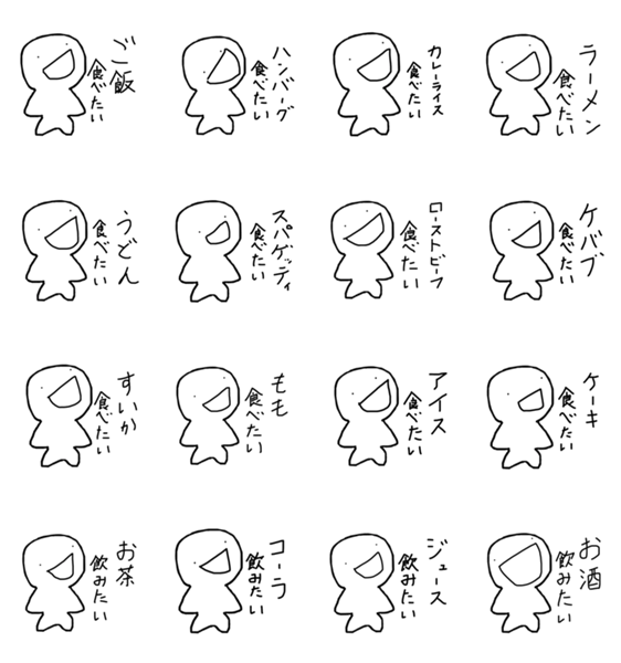 スタンプ説明 何か食べたい時、飲みたい時にどうぞ