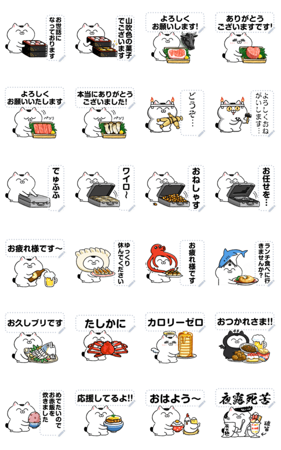 小判、お金、お肉、カニ、猫ちゃん…定番からシュールな物まであらゆるワイロを贈る猫。ありがとう、よろしく、お疲れ様など日常の挨拶を自由にかえられる便利なスタンプ! 現在この商品は一部のスマートフォン版LINE 10.3.0以上のトークルームでのみ使用できます。動作環境の最新情報はヘルプをご確認ください。