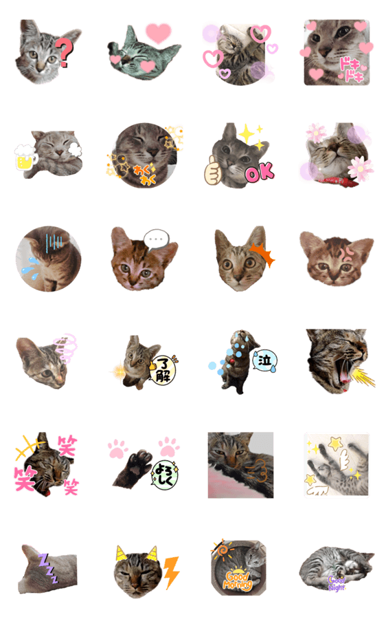 我が家のきじとらさくらちゃんとサバトラのロゼちゃんをスタンプにしました。