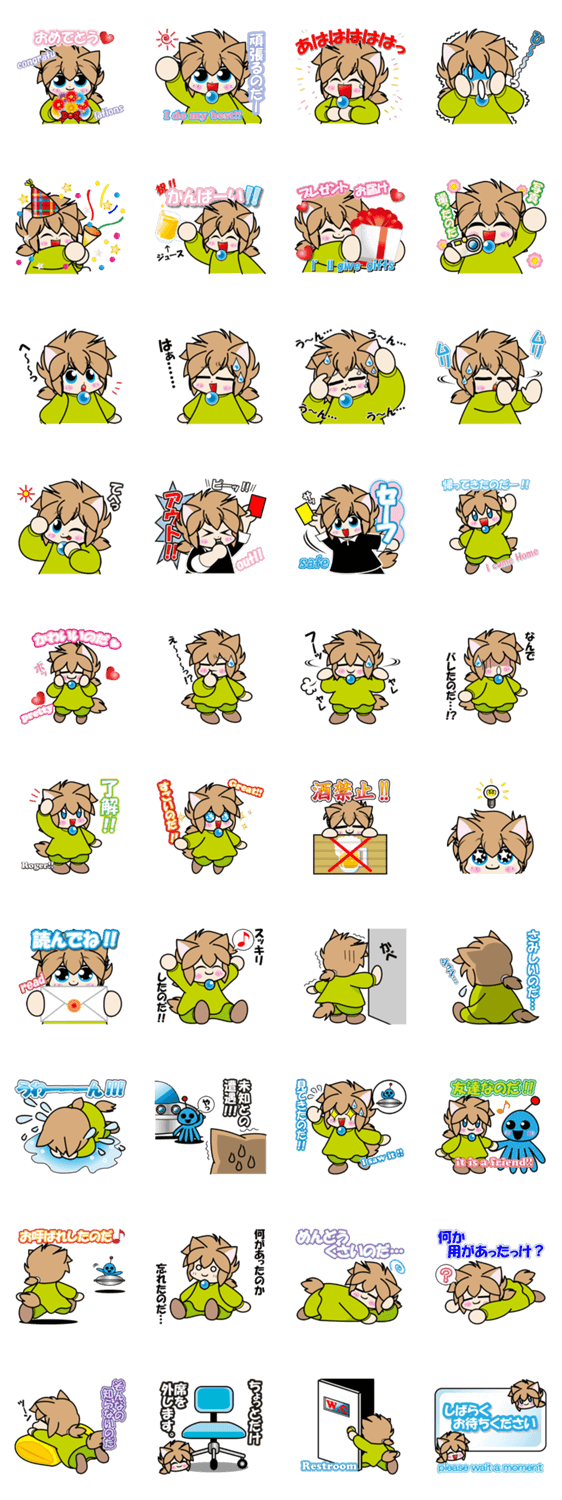 獣耳幼児「ファルぷう」のスタンプその2。ゴロゴロしたり謎の生物(宇宙人?)に会ったり、今日も元気に気持ちを伝えるよ!