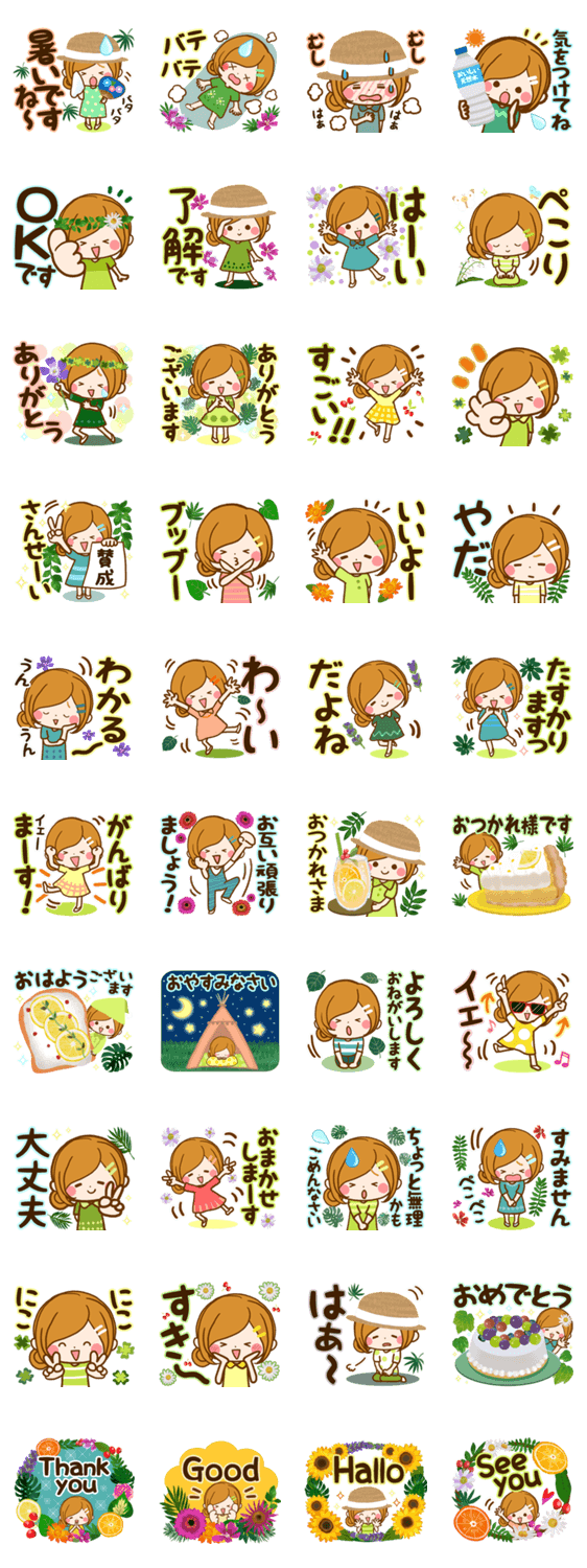 暑い季節を涼しく♪できる癒しのボタニカルスタンプです☆もちろん一年中お使い頂けます♪いそがしい時もすぐに返信できる、便利な言葉がいっぱい♡ぜひ使ってみて下さいね