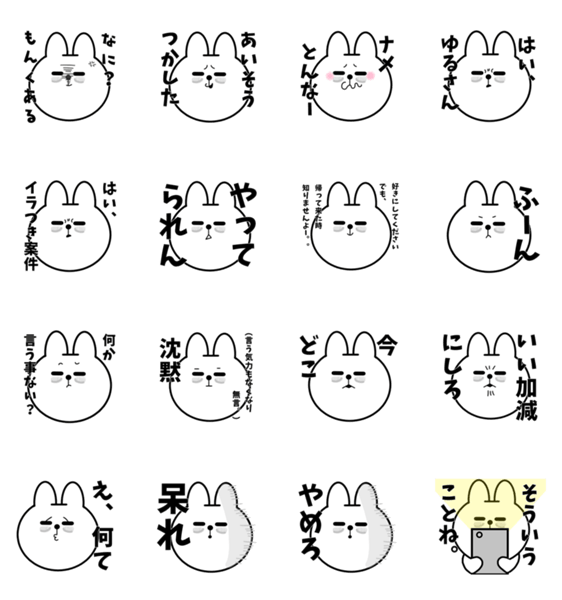 白ネコのあいうえお・・・ってるスタンプ