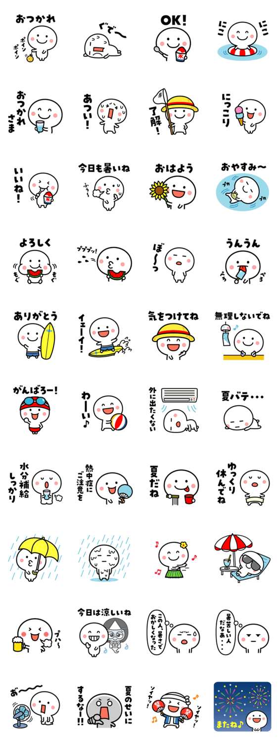 夏に使える、よく使う言葉を集めた使いやすいスタンプです。