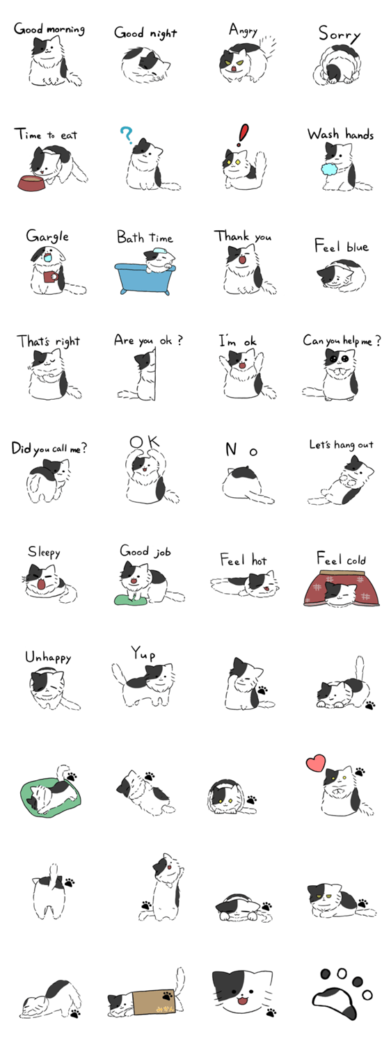 長毛黒白トビ柄にゃんこ(英語) -LINEスタンプマニア