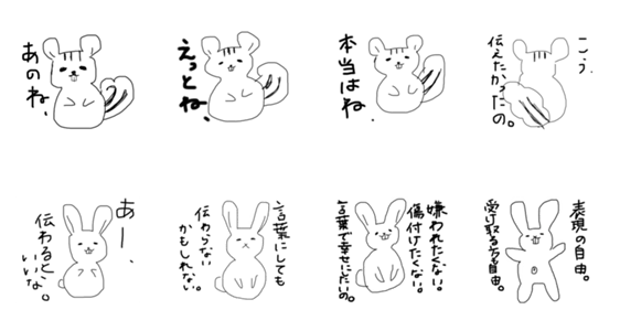 | スタンプ説明 | LINEスタンプメーカーでつくったスタンプです。私と同じく、人に何かを伝えるのが苦手な不器用さん達へ。前歯がポイントです。 |