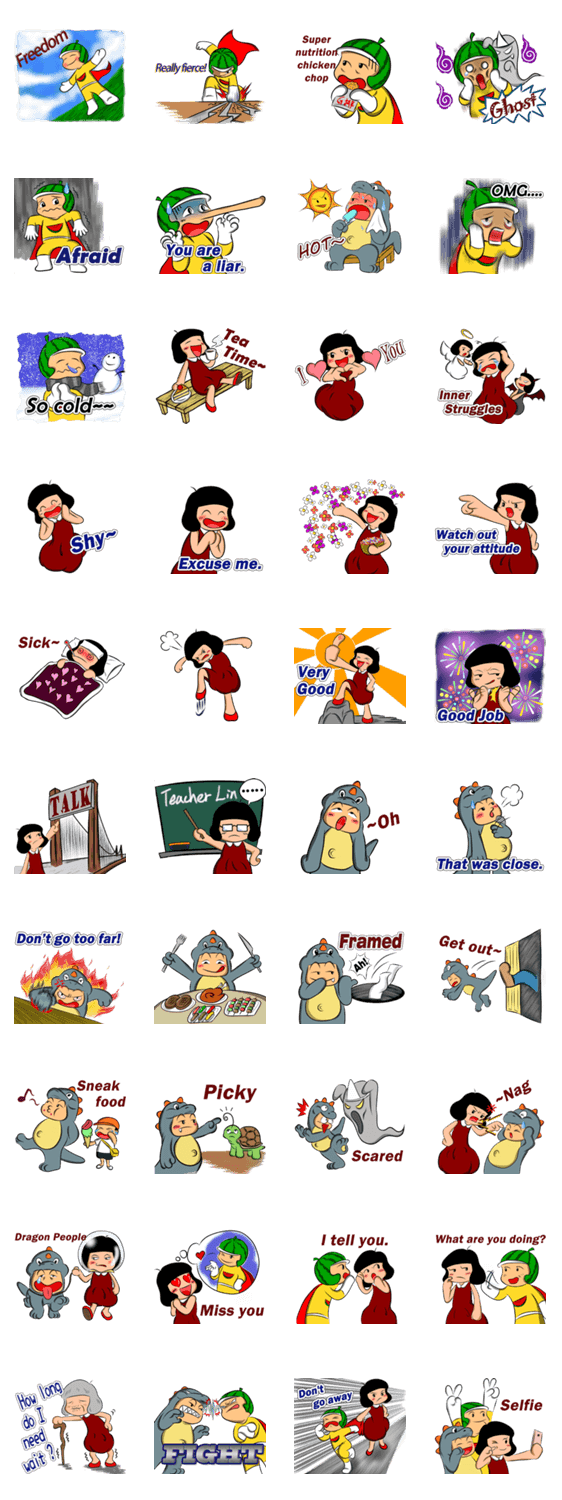| スタンプ説明 | watermelon Man & Mr. Dinosaurs are roles in the TV series for "Watermelon War", and watermelon sister is a loyal fan. Let them join the chat,thanks a lot. |