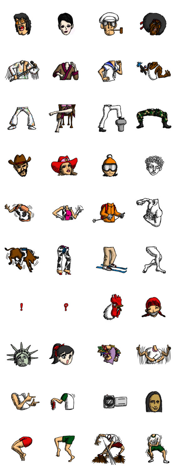 | スタンプ説明 | 3つ並べて使う大きなスタンプです。3連続で送ると大きなスタンプになります。インパクト重視のスタンプなので、挨拶代わりに使ってみてください。 |