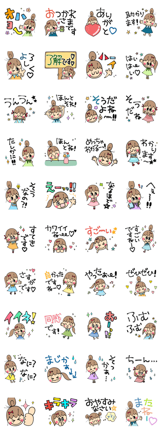 人女子♥の日常で使えるあいづちスタンプ