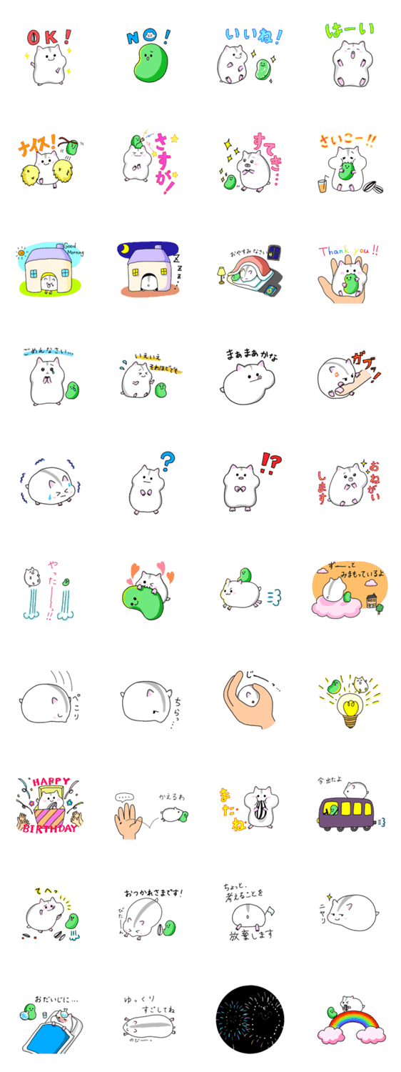 えだまめが大好物なハムスターのスタンプです。いろいろな表情をお楽しみください。